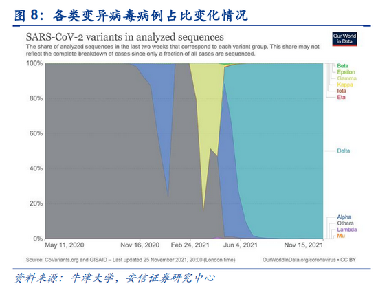 随着疫苗的普及和疫情的好转,今年7月以来英国、新加坡、泰国、丹麦、新西兰、柬埔寨、韩国等多国改变防疫政策,明确表示将与“与新冠共存”。我们认为“与新冠共存”是建立在疫苗广泛接种、新增确诊得到控制、死亡率大幅降低的基础上的,而随着越来越多的国家放松对疫情的防控,市场也越来越多的开始反映疫情即将结束的乐观预期。新的变异病毒或将转变海外的这一认知,重新将疫情持续这一可能计入定价当中。