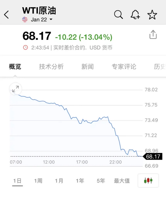 商品市场方面也受到波及。上周五,WTI原油期货日内暴跌逾13%,跌破70美元关口。