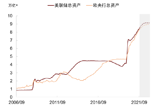 资料来源:万得资讯,中金公司研究部。美联储资产单位为美元,欧央行为欧元
