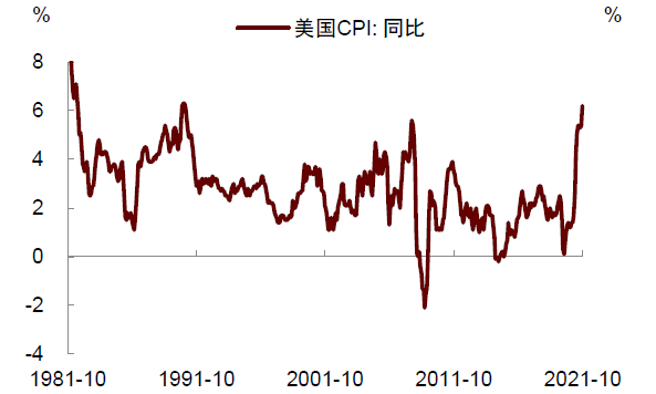 图表8:美国CPI通胀升至6.2%,为近30年新高