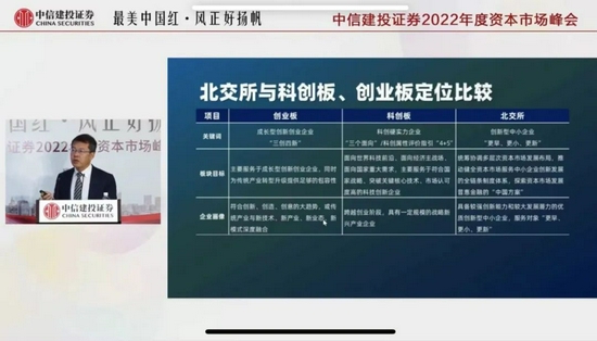 11月30日,中信建投证券2022年度资本市场峰会在线上举行。中信建投证券投资银行业务管理委员会委员、董事总经理李旭东表示,北京证券交易所是我国资本市场30多年来设立的第三家证券交易所,也是继科创板、创业板后第三个实施注册制的板块,在中国证券市场的发展过程中,具有里程碑式的意义。