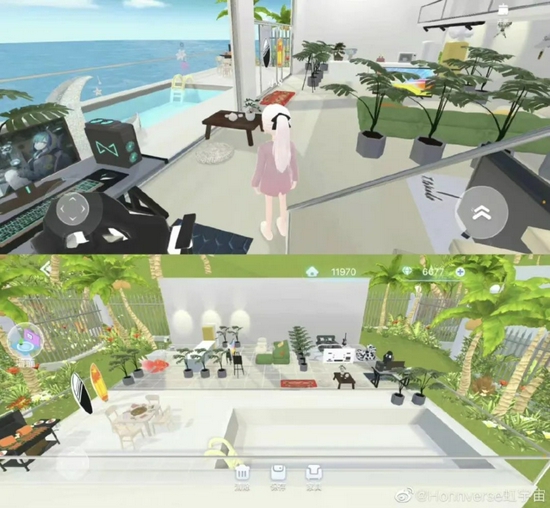 以“虹宇宙”为例,“虹宇宙”是国内元宇宙概念公司天下秀推出的游戏产品,可以拥有虚拟住宅、虚拟物品,还可以体验装修房屋、社交互动等。