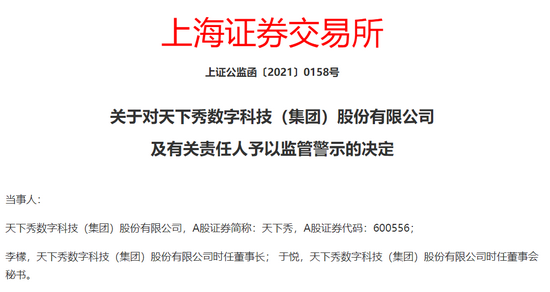 但就在19日晚间,天下秀收到上交所的监管警示。