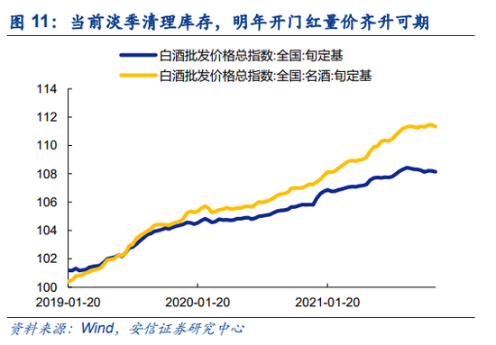 展望22年,食品饮料/猪周期/汽车/地产链等困境反转线索可期,在当下业绩真空期阶段,部分板块迎来估值修复行情,我们认为,其估值修复幅度取决于基本面改善确定性。相对而言,汽零、猪周期及高端白酒景气好转确定性预期较强,休闲食品涨价传导效果有待观察,而地产链基本面修复仍需等待明年信用扩张力度及销售回暖的进一步确认。随估值修复行情的结束,板块进一步的表现仍需等待明年业绩兑现情况。当前阶段可重点关注前期估值调整较为充分、明年一季度具开门红预期、有望量价齐升的高端白酒板块。