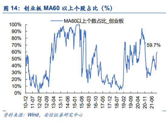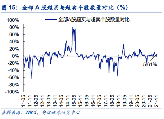 本周市场维持震荡上行,中小盘表现略强。当前市场强势个股数量占比55.9%,近一周回升3.6个百点,连续五周回升;超买个股与超卖个股之差占比5.6%,近一周回升0.6个百分点,连续五周回升。创业板来看,强势个股数量占比59.7%,近一周回升4.0个百分点;超买个股与超卖个股之差占比4.9%,近一周回落0.2个百分点。
