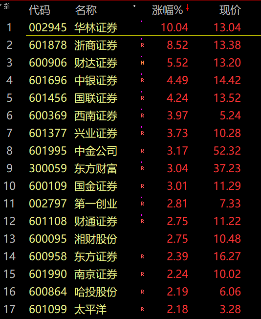 券商等大金融板块早盘走高,华林证券2连板,浙商证券、财达证券、西南证券等多股走高。不少分析认为,岁末年初市场整体有望走出跨年行情,催动券商股整体走高。