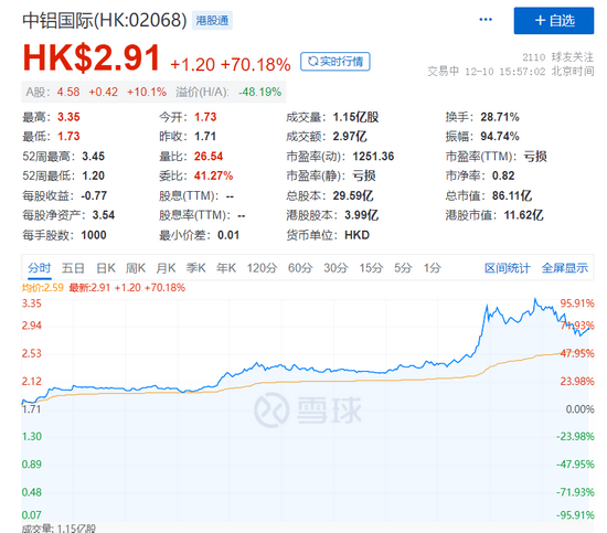 而港股的中铝国际更是夸张。直接飙涨70%、消息面上,12月进入旺季备货期后,叠加青海减产(降温+限电),锂盐加工厂集中检修(原材料为锂精矿),供应变得紧张,仅仅11月29日至12月3日这一周,电池级碳酸锂价格上涨了10000元/吨,电池级氢氧化锂上涨了4000元/吨。