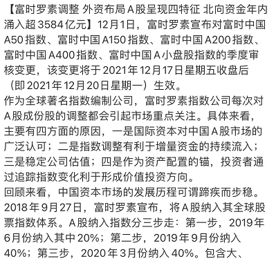 值得注意的是,下周五尾盘可能还会再来一波尾盘异动,下一次是富时罗素的调整,大家可以观察一下。