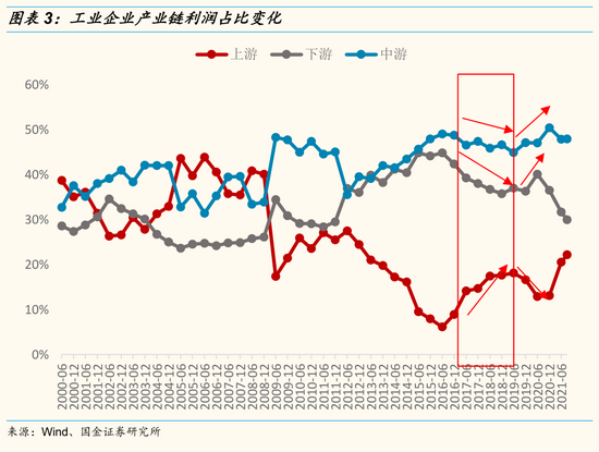 趋势二:减碳政策纠偏,上游资源品限产逻辑被证伪,产业链利润向中下游传导。尽管10月下旬发改委出台了一系列政策保障能源供给,工业限产情况有明显缓解。但是在能耗双控的大背景下,市场仍对限产存在一定的预期。此次会议对双碳目标的阐述浓墨重彩,明确实施碳中和的长期性和当前能源结构的客观条件。我们此前一直在强调,当前国内上游资源品并不缺产能,限产逻辑被证伪后,那些产能相对充足的资源品价格或缺乏上行动力,今年以来产业链集中在上游的局面在明年有望逆转,产业链利润向中下游传导的趋势较为确定。