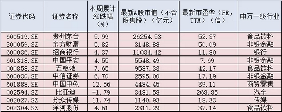 从十大成交活跃股来看,贵州茅台、东方财富、招商银行、中国平安、五粮液、中信证券、中国中免、比亚迪、分众传媒、洋河股份等个股本周累计均受到北上资金净买入10亿元以上。