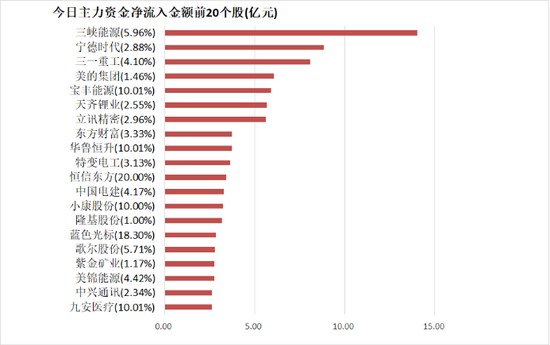 今日沪深两市主力资金开盘净流入5.79亿元,尾盘净流出19.2亿元,两市全天资金净流出106.62亿元。