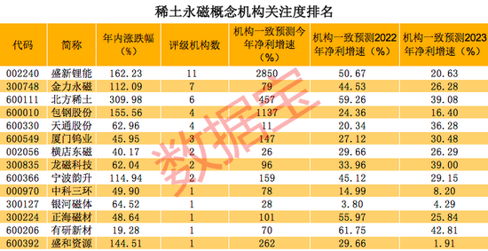根据机构一致预测,部分个股今年、明年及2023年净利有望高速增长。具体看,北方稀土、龙磁科技等个股三年净利增速均有望超过30%,盛新锂能、金力永磁、天通股份等个股三年净利增速均有望超过20%。