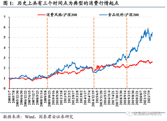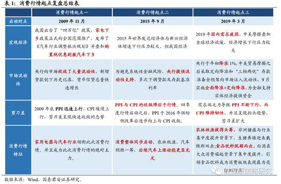 1.消费行情的起点往往在流动性宽松、CPI上行、经济拐点出现背景之下