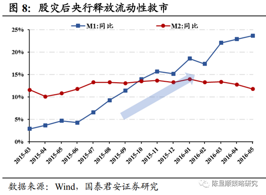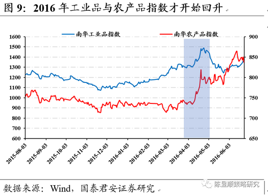 第二轮消费行情在股灾之后于2015年9月开始。股灾之后央行释放流动性,PPI与CPI的收敛滞后于行情。2015年年中股灾中股市下挫,为避免系统性金融风险,央行提供流动性支持,多次下调贷款及存款基准利率。M2在6、7月份分别跳升1%/1.5%,M1增速自年中之后保持上行的趋势,2015年末达到15.20%,货币信贷增长速度加快,同时国家队入场,股市逐渐企稳。四季度行情启动之后,PPI于2016年逐步向上与CPI收敛。