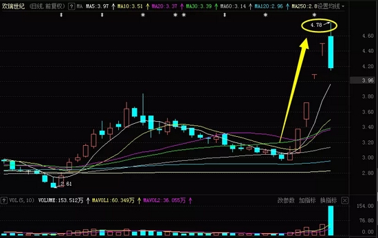 不过,今天欢瑞世纪高开逾2%,瞬间最高涨近6%,再创1年零5个月新高。然而随后股价迅速下滑,最终大跌7.33%,走出“穿头破脚”的高位转向K线组合。值得注意的是,欢瑞世纪今日的成交量也巨幅放大至上市近23年以来的历史新高,前期买入的资金集体出货的几率很大。