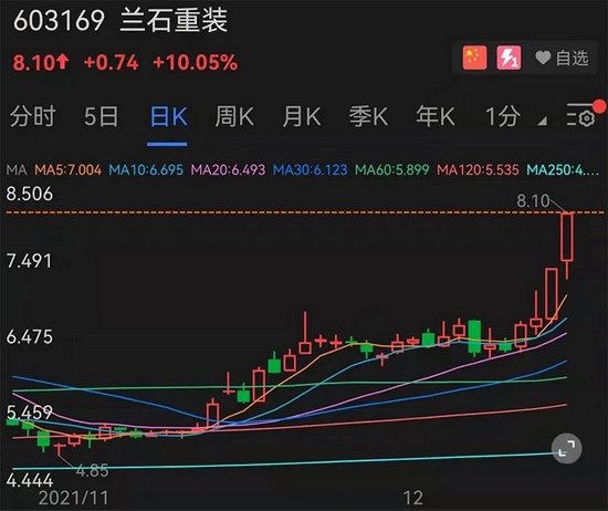 此外,兰石重装也走出连板行情,12月15日继续封涨停,收报8.10元,两连板累计上涨了21.08%。