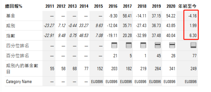 该基金最新规模有47亿美元,相当于人民币300亿元,但近年来的总回报为-4.16%,跑输同类平均水平1.99%,同时也跑输对标指数6.3%。