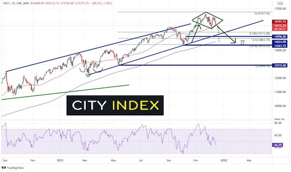 交易员预计美元在冲破前方阻力位后,大概率可能冲高,股市、商品亦可能继续攀升,但波幅将加剧,高估值的科技成长股尤其危险。他称,“成长到价值的轮动将继续,需要关注的是纳斯达克的‘钻石顶’(Dimond Top),如无法突破的话,暗示可能会向下回撤10%,在这次FOMC新闻发布会后,纳斯达克反弹后仍没有突破高点,预计还会下行。”