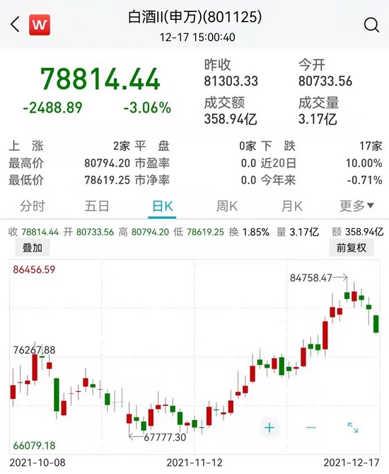 白酒指数连续三天调整