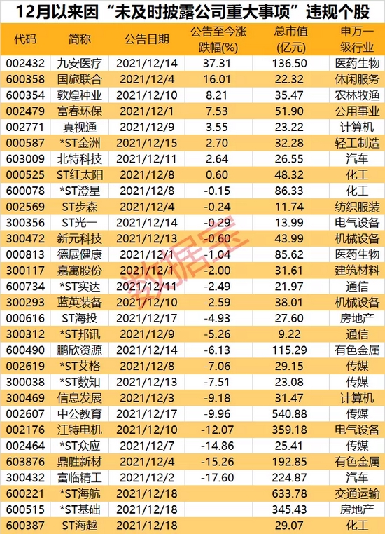12月以来30家上市公司信披违规
