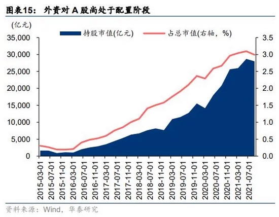 检视当下,因素1仍然存在(目前外资占A股市值也仅3%左右),外资对A股依然处于配置阶段,但因素2(国际指数对A股的纳入)至少在明年尚无明确时间表,被动资金的流入将较上一轮加息周期减少,外资流入的核心驱动力已由被动纳入转为主动配置。综合来看,中期而言,配置型外资受到美元流动性收紧的影响较小,但较上一轮加息周期,被动资金的缺席或使北上净流入增速有所下降。