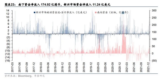 上周追踪新兴市场权益的前50大ETF净流入为11.24亿美元;南下资金净流入174.92亿港币,较上一周(净流入144.11亿港币)继续回暖。从分行业南下资金的分布来看;软件与服务(+20.18亿港币)、食品、饮料与烟草(+19.61亿港币)、公共事业II(+12.42亿港币)板块净流入居前;制药、生物科技与生命科学(-10.64亿港币)、汽车与汽车零部件(-6.55亿港币)、材料II(-4.30亿港币)板块净流出居前。