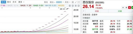 紧随三羊马其后的是西仪股份,今日收获12连板。