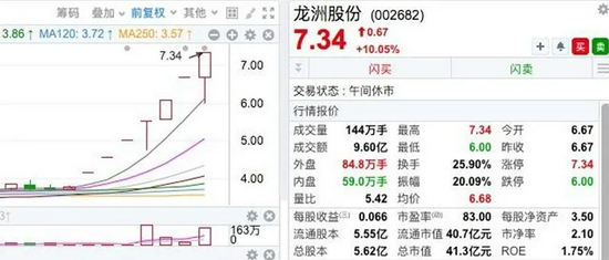 现资金分歧在龙洲股份上体现的更是淋漓尽致。该股开盘一分钟即跌停,又于9:38开板,后一路震荡走高,目前涨停,盘中上演“地天板”,留下一个深深的下影线字。