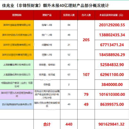 投资人代表告诉记者,佳兆业目前理财产品包括锦恒财富127亿投资者和非锦恒财富40亿,叠加兑付利息,佳兆业理财产品合计涉众资金177亿元。其中,非锦恒财富产品牵涉20家平台和通道。