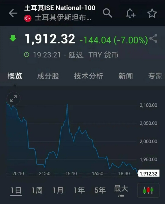 1.土耳其股市又熔断了,刚刚开盘后下跌5%,刚刚暴跌7%,再次触发熔断。
