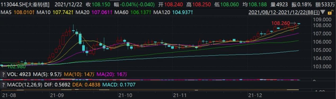 2021年,浦发转债始终稳坐“钓鱼台”。截至目前,其今年最高价为105.50元,最低价为101.01元,最大落差仅4.49元。任他东风西风,我自岿然不动,说的就是它。