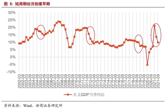 从短周期经济所处阶段来看,我们认为:(1)2021年类似于2005年、2011年、2018年,也即,经济下行但流动性尚未放松;(2)2022年类似于2012年、2013年、2019年,也即,尽管经济放缓但流动性开始放松。