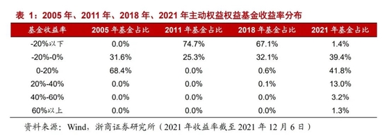 映射到权益,以主动权益基金收益率为观察样本,2005年、2011年、2018年、2021年多为收益率相对偏弱的年份