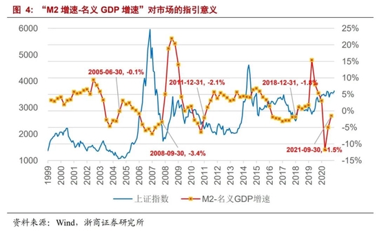 就2021年来看,截至2021年Q3剩余流动性(M2增速-名义GDP增速)为-1.5%,展望后续,一则名义GDP增速延续放缓,二则M2增速预计边际改善,继而剩余流动性再次进入由负转正的拐点。