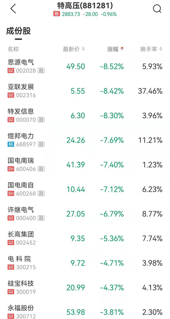 在国电南瑞的带动下,特高压板块集体重挫。截至收盘,思源电气、亚联发展、特发信息、国电南自等跌幅均逾7%。