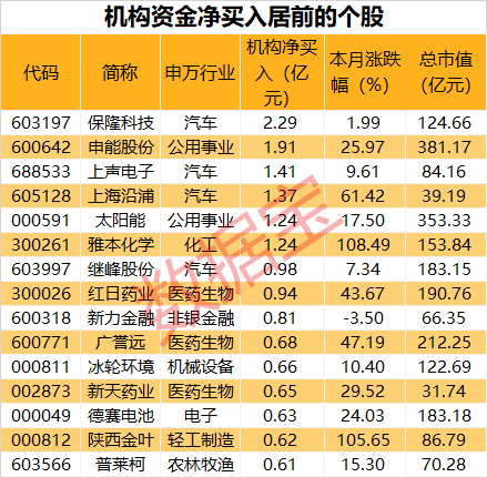 从行情上来看,机构本月净买入的个股总体来说涨多跌少,20股累计上涨30%以上。九安医疗本月涨幅居前,月初至今累计上涨123.47%,本月已收获10个涨停板,是近期除新股外最强势的股票之一。公司近日遭深交所发关注函,要求公司说明是否存在违反信披规范、利用互动易平台迎合市场热点、炒作公司股价的情形。