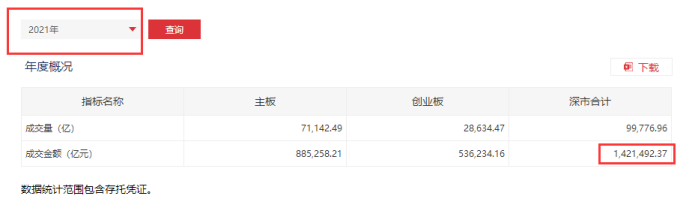 在此之前,根据深交所网站披露的数据计算,截至2021年12月28日收盘,2021年以来深市累计成交额已达到约142.15万亿元。
