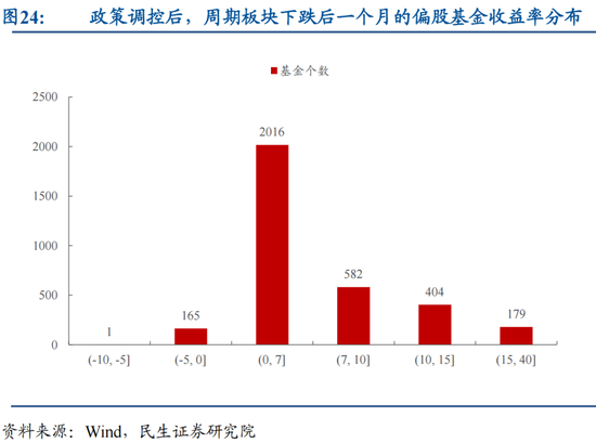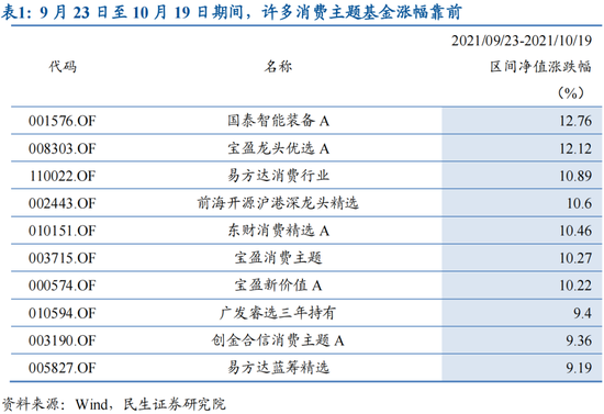 市场观点总结与后续验证:我们从主流的13家研究机构的周观点中看到,只有3家机构着重讨论了周期品价格上涨和周期股的问题,并且观点恰好相反,1家机构认为:能耗双控方面的“纠偏”会到来,但由于“双碳”目标的存在,不意味着对周期板块的供给限制就会完全放开,如果“纠偏”能够使得被压制的需求回暖,那么对周期股来说,产能的恢复反而是一件好事,商品当价格出现回落企稳后,但使市场认识到大宗商品的价格底部抬升,业绩中枢与以往相比更高的时候,才是周期股得到价值重估的更好的机会的时点;而相反的观点有2家,其中1家机构的观点是认为周期股将受制于“纠偏预期”,导致性价比下降,另一家机构则认为大宗商品价格上涨或接近尾声,而对周期股则没有明确观点,上述两家机构都推荐白酒和医药板块。后续来看,“纠偏”在部分发生,许多公司的停产仅到9月30日就告一段落,开始恢复生产;从商品价格上来讲,煤炭、钢铁等商品价格继续上行,铜与铝有些许调整,但周期股一直至国庆节前都在继续调整,直至国庆节后有部分反弹。商品和股票的背离一直持续到了10月19日。在10月19日,国家发展改革委组织重点煤炭企业、中国煤炭工业协会、中国电力企业联合会召开今冬明春能源保供工作机制煤炭专题座谈会,研究依法对煤炭价格实施干预措施,消息发布后动力煤期货跌停,截止10月20日收盘,煤炭板块跌幅6.70%。此后,大宗商品价格与周期股一同下跌。从基金表现来看,从9月23日至10月20日,偏股基金指数上涨1.5%,涨幅前10的基金中4只都是消费主题基金。