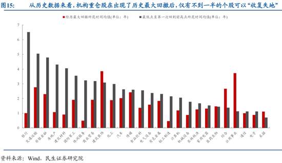 对于经历了深度回调的核心资产而言,美债收益率的上行与通胀预期对高估值的压力依然广泛存在,而交易层面的不稳定因素也正在显现;另外从历史回测数据来看,机构重仓股在出现了历史最大回撤后,仅有不到一半左右的个股可以“收复失地”,并且等待时间平均达到两年半之久,而在核心资产短期急跌20%以上后抄底买入的策略同样表现平平。