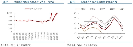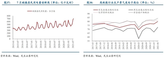基本面情况与市场特征:天气热叠加生产热,全国多地出现用电紧张。夏季高温天气来临,全国用电量、用电负荷历史记录不断被刷新。从电力需求端看:7月城镇居民用电量较2020年增长19%,且工业企业生产景气度较高,高耗能行业的产能利用率达到2017年以来的最高值。而与此同时,动力煤市场价已接近1000元/吨,重点电厂煤炭库存天数较往年大幅降低。面对明显的用电缺口,部分地区对电解铝、电石、磷化工生产等高耗能行业进行限电。
