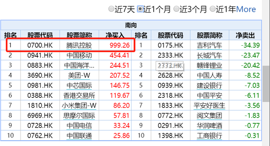 腾讯近一个月净流入逼近1000亿,中国移动、中国海洋石油、美团、中芯国际、港交所都净流入超100亿,这6家公司获内资涌入超2000亿。