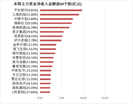 本周沪深300主力资金累计净流出1242.11亿元,创业板净流出534.70亿元,中小板净流出642.56亿元。沪股通本周累计净流出55.45亿元,深股通累计净流出9.51亿元。