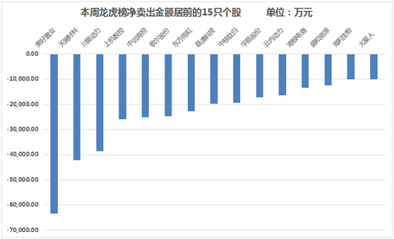 个股龙虎榜净卖出金额居前的15只个股分别为:
