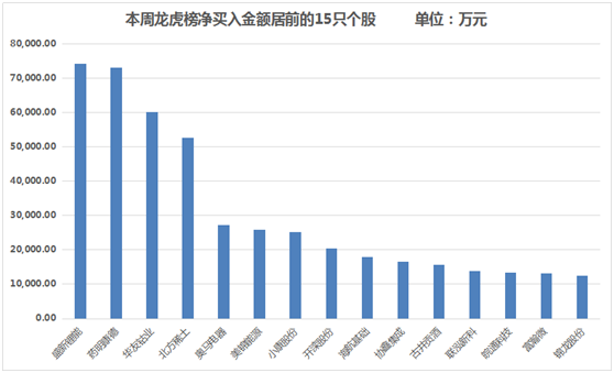 个股龙虎榜净买入金额居前的15只个股分别为: