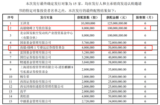1月28日晚间,西部材料发布非公开发行股票发行报告书,发行股票数量6280万股,发行价格12.50元/股,募资总额为7.85亿元。此次发行最终确认发行对象有15家,包括高毅晓峰2号致信基金获配800万股,获配金额为1亿元;高毅-晓峰1号睿远证券投资基金获配400万股,获配金额为5000万元。