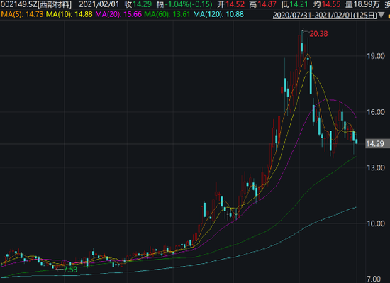 基金君发现,西部材料在去年涨幅超140%后,今年年初表现不佳,该股股价在今年1月5日出现阶段高点20.38元以后,一直震荡下跌,最新报收14.29元,已经较高点跌去了29.88%。此次非公开发行的价格是12.50元/股,目前股价尚未跌破定增价格。邓晓峰拿出1.5亿元参与西部材料的定增,12.50元/股的价格也比较便宜,可见其看好。