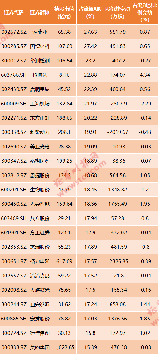 从持股占流通股比例的变化情况来看,44股获北上资金大幅增持,北上资金持股占流通股比例较1月末增加超过1个百分点。