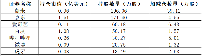 另外,桥水一方面清仓了特斯拉,另一方面则对蔚来、京东、百度、虎牙等多只明星中概股进行增持。