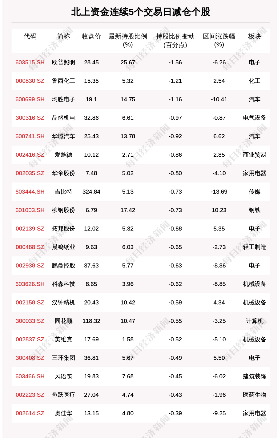 原标题:揭秘北上资金:连续5日减仓这68只个股(附名单)