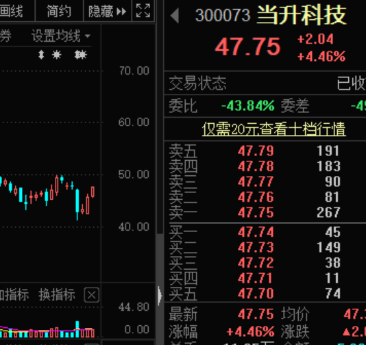作为锂电池概念龙头之一,当升科技一度从70元调整至本周最低42元下方,近两个交易日则大幅反弹,周四上涨逾5%,周五涨逾4%。